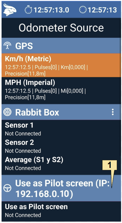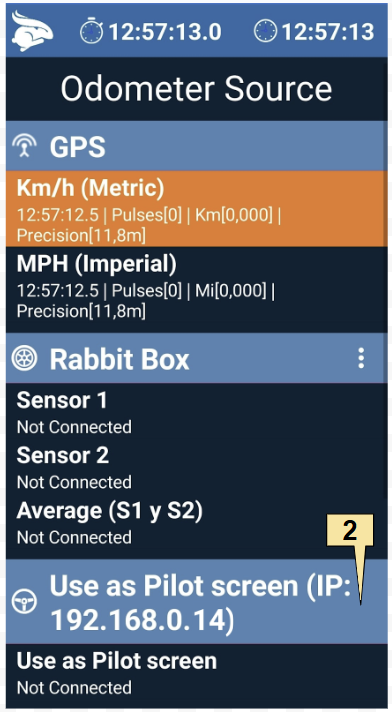 2. Open the “Connections” screen in the pilot’s Rabbit Rally 2.0. Verify that the two devices are on the same network: their IPs must have the same prefix. In this example it is 192.168.0.x.