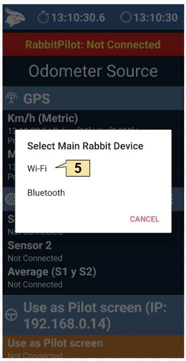 The Rabbit Rally 2.0 allows you to make the connection by bluetooth 4.0, bluetooth 2.0 or Wi-fi to connect the pilot screen to the co-pilot’s Rabbit Rally, choose the method you want and follow the steps below.