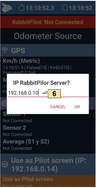 6. Type the ip of the copilot’s device, which in our example is 192.168.0.10