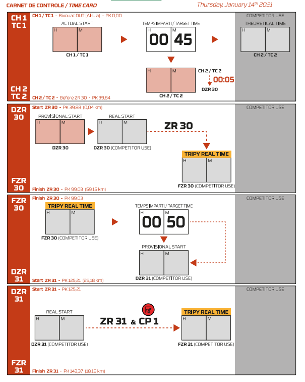 Carnet de Ruta o Carnet Horario – Es una hoja, entregue en el día del rally, donde vienen los tiempos de los enlaces, tramos de regularidad y neutralizaciones. Con ella podemos calcular nuestra hora de salida a cada tramo.