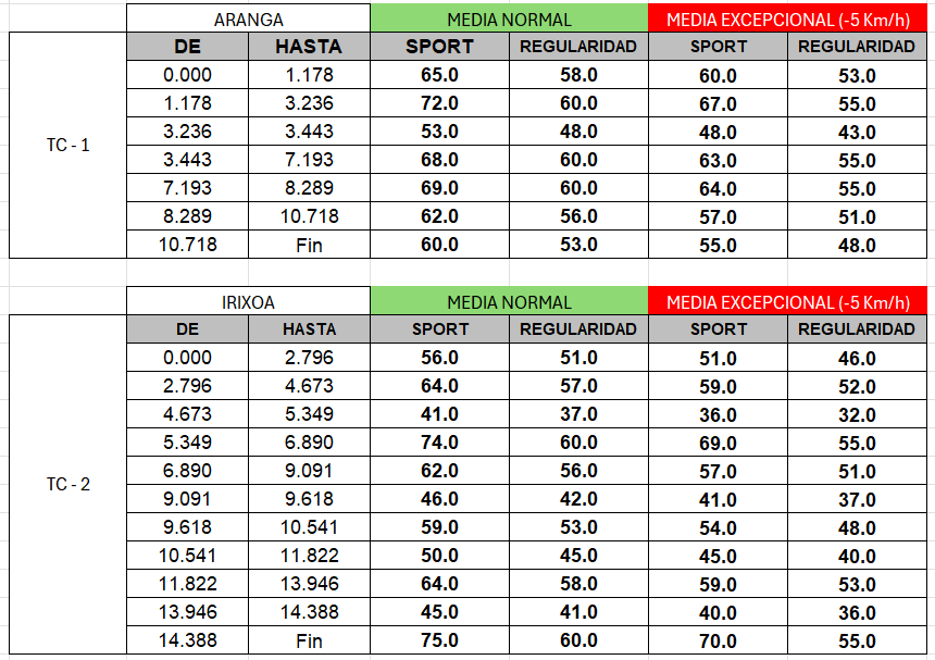 Tabla de medias – Es una tabla, generalmente liberada en la web del organizador con una semana de antelación al rally, donde encontramos las distancias y cambios de medias de cada tramo. Esse es el documento que nos servirá para entrar los datos en el Editor de Tramos del Rabbit 2.0.