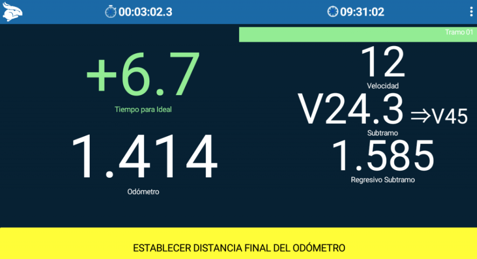 1. Cuando el siguiente cambio de media sea una referencia externa el Rabbit nos indicará mostrando una barra amarilla com el texto “Establecer distancia final del odómetro”. En este momento debes estar atento para encontrar esta referencia visualmente.