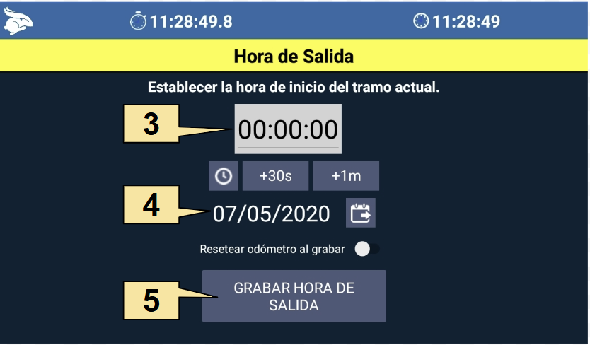 Para configurar la hora de salida dependemos de la información que le proporcionó la organización del rally, que puede ser: Roadbook digital o Tabla de medias.
