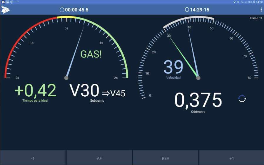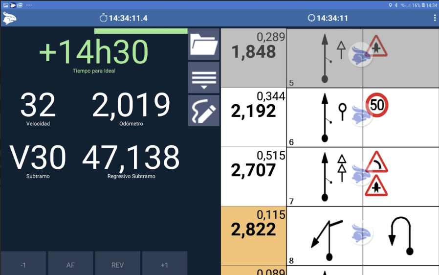 El Rabbit Rally 2.0 tiene cinco pantallas de navegación diferentes. Con ellas, puedes adaptar la manera de navegación a su gusto. Para seleccionar las pantallas basta hacer clic en los 3 puntitos en el canto superior derecho de la pantalla de Navegación y elegir una de ellas.